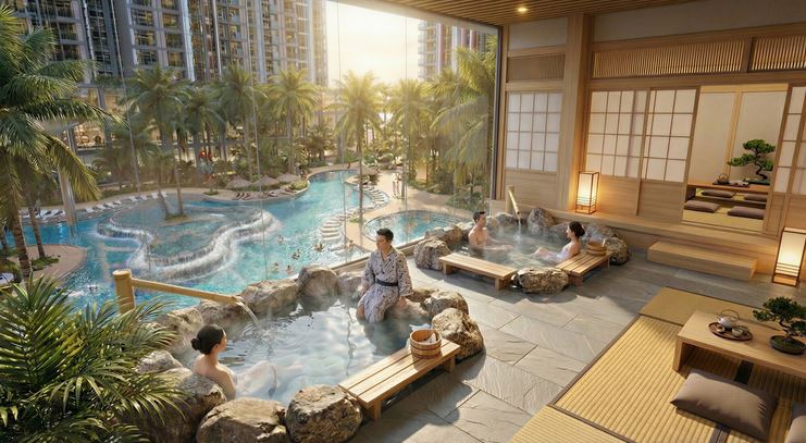 - Tiện ích: Bến du thuyền, khu khoáng nóng, không gian cây xanh/mặt nước chiếm 20%.