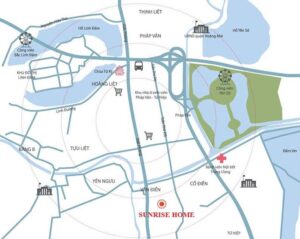 Dự án Sunrise Home tọa lạc tại vị trí đắc địa trên trục đường Ngọc Hồi – Quốc lộ 1A, xã Ngọc Hồi, huyện Thanh Trì. Vị trí này mang lại nhiều lợi thế cho cư dân: